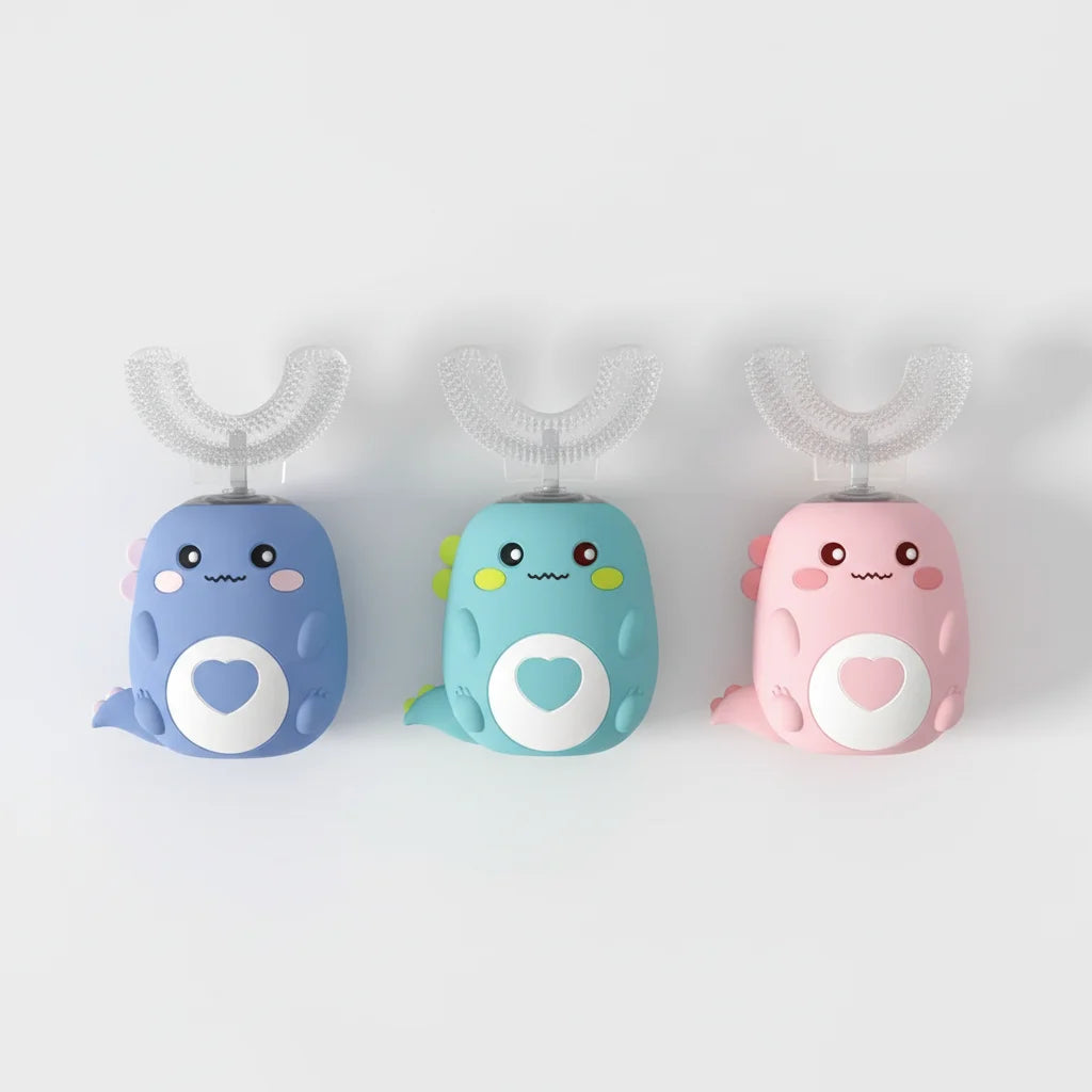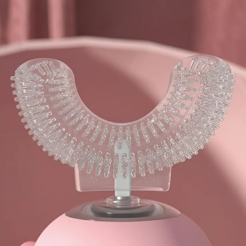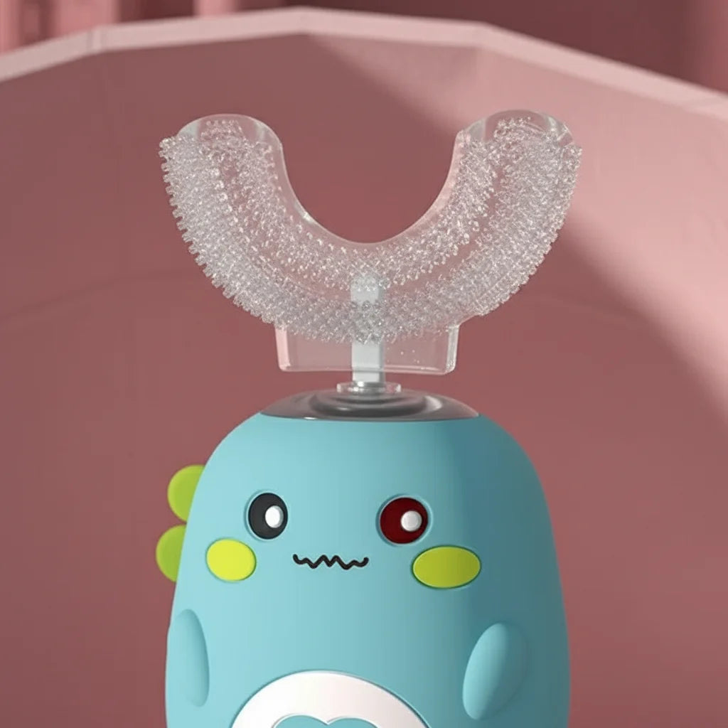 Grâce à sa tête en silicone ergonomique en forme de U, chaque dent est nettoyée simultanément sous tous les angles. C'est un brossage complet et doux, parfait même pour les petites bouches. Votre enfant aura des dents étincelantes sans effort.